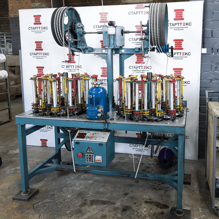 Машина для изготовления плетёных шнуров круглого сечения из натурального и синтетического сырья, как с сердечником, так и без него.